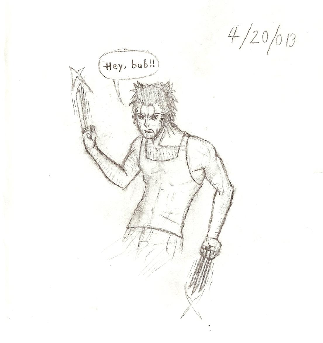 I went to a church picnic yesterday. We started talking about movies and the new Wolverine one came up, so I drew this on one of the paper-covered bench tables. I cut it out and took it home.