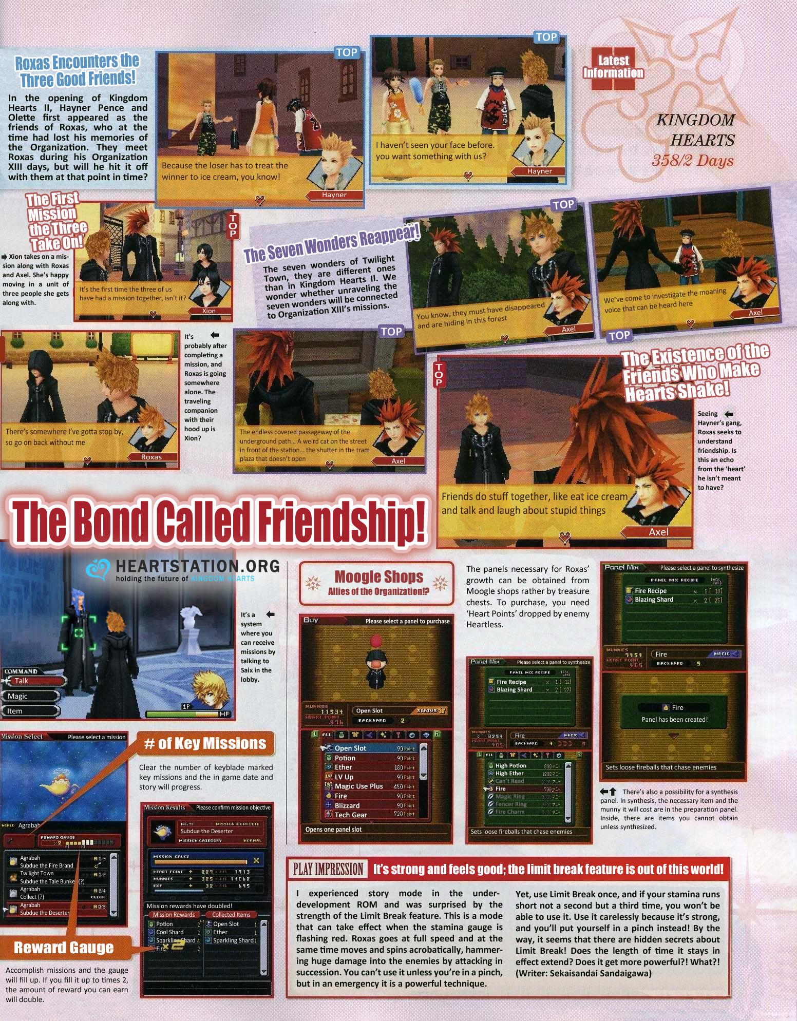Last month, scans of the latest issue of Famitsu Monthly surfaced. This four page spread included information and screenshots regarding Kingdom Hearts 358/2 Days. HEARTSTATION.ORG have translated the last two pages of this article into English. You can view this translated version below.