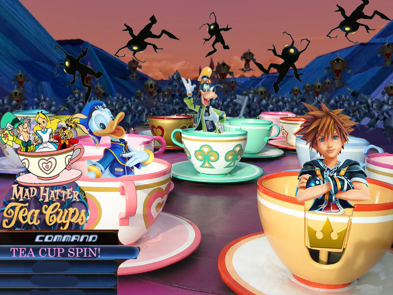 Posted January 10, 201510 yr Sora, Donald and Goofy sit in spinning tea cups which causes mini tornadoes and heartless fling into the air once hit!