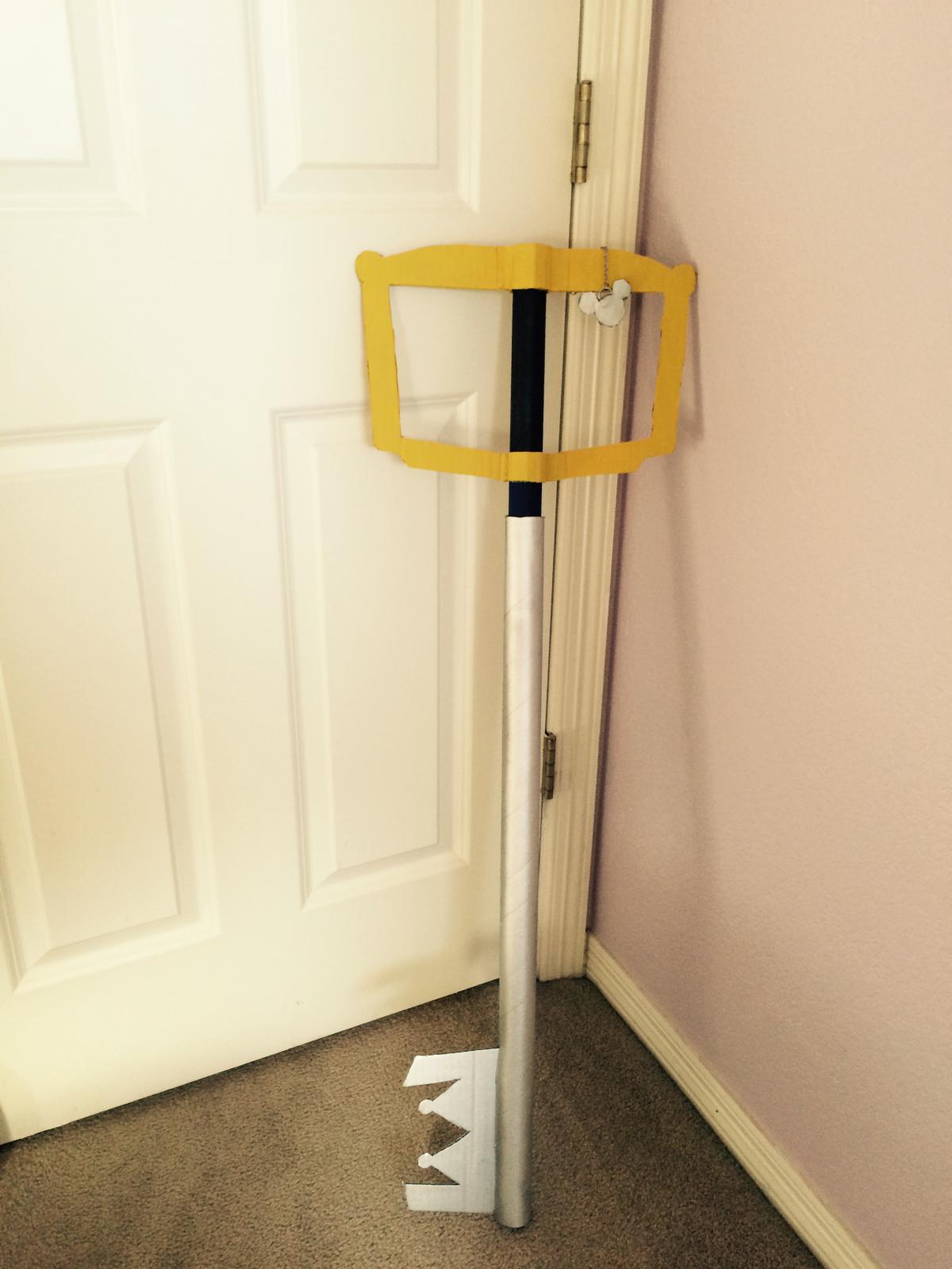 I made this out of cardboard the other day because I was bored and needed it for my Halloween costume, so... Wrapping paper tubes, a box, spray paint, acrylic, and my craft knife. I know the handle is too wide and not thick, but I still want to show it off.