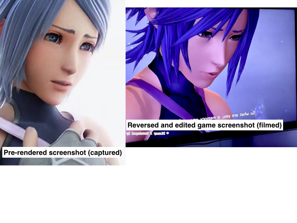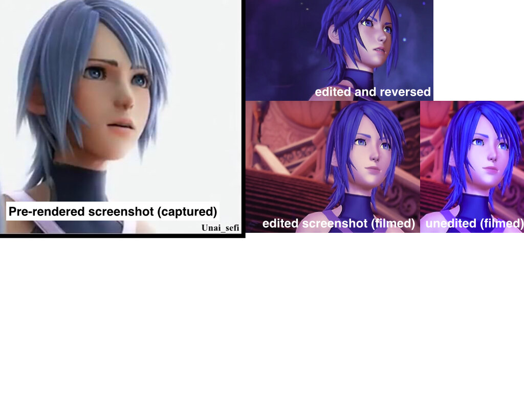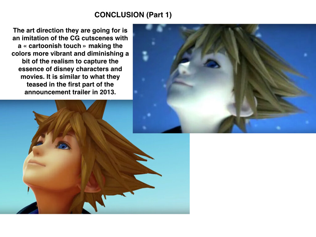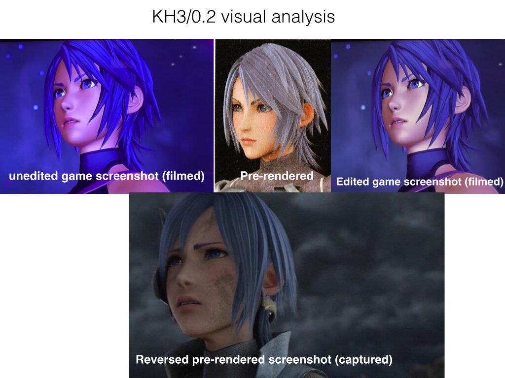 That was my main issue with KH3's look. The character models. In the very first trailer we were promised the characters would look a certain way and the latest trailers didn't live up to my expectations. They said Sora would look like this: Instead, he looked like that: And then we had terrible character models for Mickey, Riku, Kairi and Yen Sid. They all looked like Barbie dolls. The latest footage for 2.8 has shown immense improvement in the character models. As you can see in this screenshot featuring Ephemera, the character's hair and clothing are a lot more detailed and textured which is great. Their skin also doesn't look as "plasticky" as the previous screenshot which removes the doll effect Strangely, in the 0.2 portion of the trailer, Aqua's model still suffers of the doll effect. Her hair and cloth are really detailed but her skin still looks like plastic. I think that's mainly because of the lighting. It looks like Square has been having a hard time with finding the right lighting for night time with the new engine and that gives the characters like Terra, Aqua, Riku and Kairi a weird look since they were all in "nightime lighting" (Mysterious Tower & Realm Of Darkness are "night themed"). But as we've seen with X Back Cover, the right lighting seems to fix every problem.