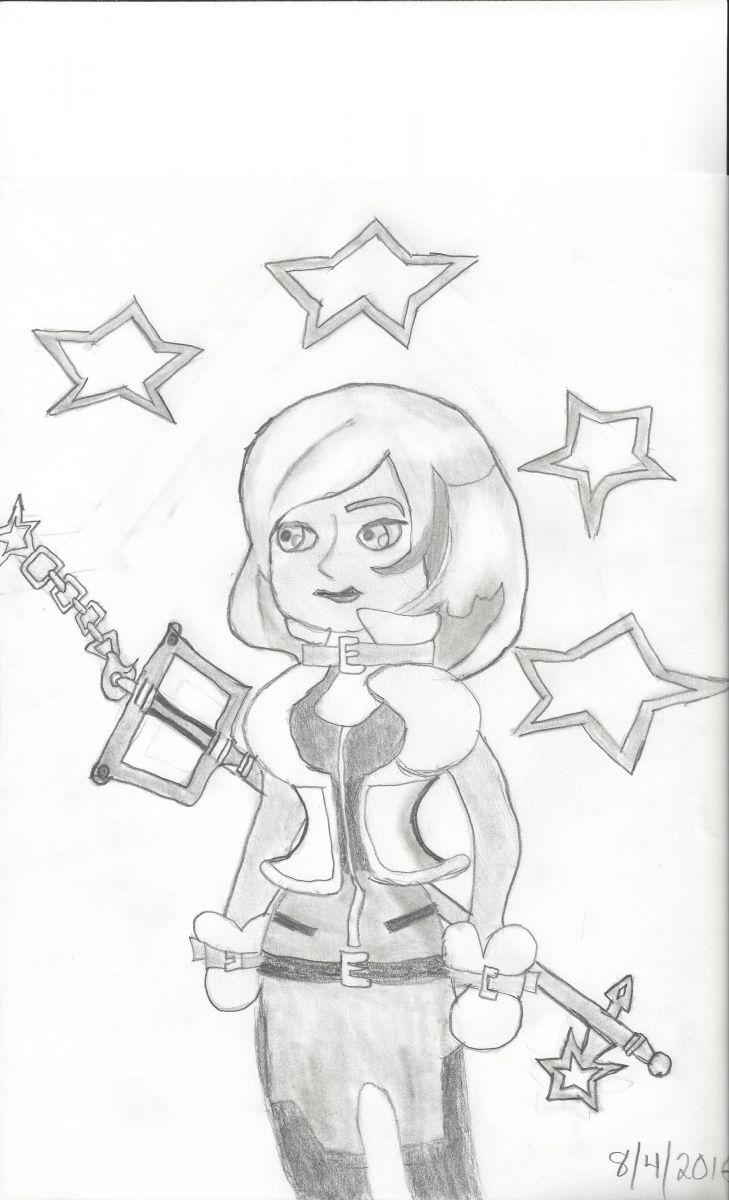 Here is my attempt of drawing my KHUX/KHX[chi] avatar. It isn't much, but it's a start. I have so many KHUX/KH X[chi] related ideas floating in my head I wish to draw them out to my best ability and hopefully perfect my drawing. I was working on one drawing last night, but it isn't finished yet. It has something to deal with the Hag and the apple related Heartless that roams in Dwarf Woodlands.