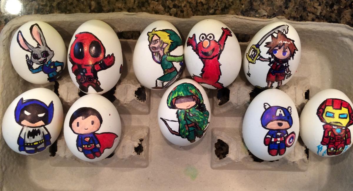 I had some fun drawing on my eggs for our family's annual Easter egg fight. They all died, but Sora made it till the next to last round. Bonus points to anyone who can guess every character. Or a like. Or something.