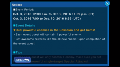 From October 3rd until 11:59 PM PT on October 9th, 2016, the Coliseum has a special event taking place to battle powerful enemies and level up your Keyblade! Each event quest will contain 1 powerful enemy and players will receive rewards such as the all new "Gems" upon completion of the event quests! Gems can be used to level up a specific Keyblade from +25 to +26. Each Keyblade will require a specific type of Gem to level up from +25 to +26. Power Gems will level up the Treasure Trove & Olympia Keyblades, the Speed Gem will level up the Starlight, Lady Luck & Divine Rose Keyblades, and the Magic Gems will level up the Three Wishes and Moogle O' Glory Keyblades. The notice also recommends using medals with powerful single-target Special Attacks as well as Special Attacks that decrease an enemy's defense or increases your strength. Also starting October 3rd, there is now a new schedule for Adamantite Ore Challenges. You can find the new fixed daily schedule below: Monday: Olympia Tuesday: Treasure Trove Wednesday: Three Wishes Thursday: Lady Luck Friday: Starlight Saturday: Divine Rose Sunday: Moogle O' Glory Will you be taking advantage of these new Gems? Let us know in the comments!