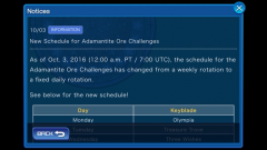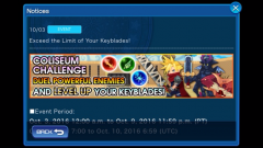 Coliseum Challenge & Level Up your Keyblades 10/3-10/9 and daily Adamantite Ore schedule