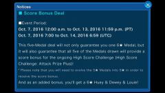 From Oct. 21st until 11:59 PM PT on Nov. 3rd, earn new Halloween themed Avatar Parts! Defeat Halloween Heartless to earn event coins. During these event quests, you might come across an enemy named the God Tricholoma which will give you a large amount of event coins after defeating it! However, it will run away if it's not defeated within a certain amount of turns. The event board contains the avatar parts: Halloween, Pumpkin Hat, Pumpkin Cravata/ Pumpkin Brooch (both with an Item Drop Perk +3), and Halloween: Cape/ Halloween: Gloves. You can also win Chip, Dale, Cid, Moogle & Magic Mirror medals. Images of the Avatar Parts are included in the gallery at the bottom of this post. From Oct. 21st until 11:59 PM PT on Oct. 27th, a new High Score Challenge will be taking place! Jack & Sally as well as Zero medals are included in the ranking prizes as well as Magic Mirror, Chip, Dale, and Huey & Dewey & Louie medals. Images of the full ranking reward list can be found in the gallery as well as a list of medals that will give you a high score bonus! The Epic Attacks Deal returns from Oct. 21st until 11:59 PM PT on Oct. 27th! This 5 medal deal guarantees 1 of the 6★ Epic Medals in the notice, each of which has a Special Attack that targets all enemies! It will also come with 3 of its Special Attack dots filled in. For a full list of possible medals as well as more details about the Special Attack bonus, please check out the gallery. Lastly, there was a notice to apologize for the fact that Chip & Dale medals were never delivered to players who unlocked the Special Attack Bonus on the 6★ Sweetheart Beast Medal from the Beauty and Beast Event. To apologize for the delay, 2 of each medal will be sent to everyone who met the requirement starting on Oct. 21st at 2:00 am PT.