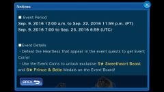 Maintenance on 9/12, Daily Jewel Challenge in International Version of KHUX from 9/12 until 9/18