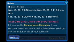 Bonus Jewel Campaign in International version of KHUX from 9/15-9/20