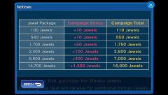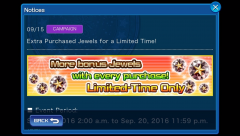 From September 15th until 11:59 PM (PT) on September 20th, you'll receive bonus jewels any time you make a jewel package purchase. The amount of bonus jewels varies depending upon which package is bought, with +10 jewels being the lowest and +1,300 jewels being the highest. Those who purchase the Weekly Jewels Extravaganza deal will receive 50 additional bonus jewels for a total of 3,050 jewels. Please note that the confirmation message when making your purchase will not include the bonus amount, but they will be added to your account upon purchase. For a full chart of the jewel bonuses, please refer to the gallery images at the top of the post. Will you be taking advantage of this campaign? Let us know in the comments!