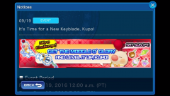Moogle of Glory Keyblade and new Challenge Event in international version of KHUX 9/19-9/25
