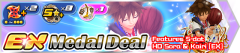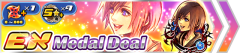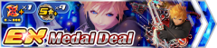 Today's update brings a new medal deal--the HD Sora & Kairi EX Deal! Until February 15th at 23:59 PT, this deal guarantees a Magic Broom medal and at least two Tier 4+ medals with 1-3 ability dots filled with each pull. HD Sora & Kairi EX is guaranteed within 15 pulls, and will arrive with 5 ability dots filled if pulled. HD Sora & Kairi EX (includes HOME Screen BGM): Upright/Power // Tier 7 Guilt (at max Guilt, damage multiplier: ×12.60 - 17.46) // AoE // 4 SP Cost // Upright atk+3 for two turns, stronger against standalone enemies (including raid boss parts), resets enemy counters, Curaga, 3 SP recovery, 3 hits. Will you pull from this deal, or will you keep saving?