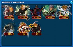 Until December 14th at 23:59 PT, the Debut Deal will be open! This deal guarantees at least one of the following medals with each pull: HD Vanitas, HD Zexion, 358/2 Days Black Coat Riku, HD Final Form Sora, and HD Larxene. These medals will arrive with 1-3 ability dots already filled and may also arrive with a Status Bonus. HD Vanitas: Reverse/Magic // Tier 7 Guilt // Single-Target // 0 SP Cost // copies the ability of the next medal, only works if set before a medal HD Zexion: Reverse/Magic // Tier 7 Guilt // AoE // 3 SP Cost // for 2 turns: PSM atk+4 and PSM def+2, enemy atk & def-1, stronger with more SP, 7 hits HD Final Form Sora: Upright/Speed // Tier 7 Guilt // AoE // 4 SP Cost // Upright atk+1 and enemy def-3 for one turn, stronger if set in slot 5, 8 hits 358/2 Days Black Coat Riku (includes BGM): Upright/Magic // Tier 7 Guilt // AoE // 4 SP Cost // Upright atk+1 and enemy def-3 for one turn, stronger if set in slot 3, 8 hits HD Larxene: Reverse/Speed // Tier 6 Guilt // AoE // 4 SP Cost // enemy def-3 for one attack, stronger if more SP has been used this turn, 3 hits During this same time period, a High Score Challenge event featuring the Valor Genie medal is being held. Rank high for the Valor Genie medal! Top 1000 rankers will receive a Valor Genie medal with a Status Bonus. Valor Genie: Upright/Magic // Tier 7 Guilt // Single-Target // 7 SP Cost // M atk+7 for one turn, 4 SP recovery, 4 hits Images from this update can be viewed below. Which medal are you aiming for?