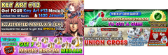 VIP this week offers four Key Art #12 medals (along with 1400 Jewels), another Illustrated Marluxia EX medal, and seven brooms. Another four Key Art #12 medals will be available in next week's VIP Quests. Key Art #12: Upright/Power // Tier 6 Guilt // AoE // 3 SP Cost // for 2 turns: atk+3, def+1, PSM atk & def+1. Removes target's enhancements, stronger if set in a smaller slot number, 8 hits. Until December 4th at 23:59 PT, a High Score Challenge Event offers the Ariel medal to top rankers! Top 1000 rankers will receive an Ariel medal with a Status Bonus. Equip as many Bonus Medals as you can for a higher score! Ariel: Upright/Magic // Tier 6 Guilt // Single-target // 0 SP Cost // atk+6 and enemy def-1 for one turn, 5 SP recovery This week's Union Cross update features strong bosses. Enemy attributes will change daily: Power (today) > Speed > Magic > Power > Speed > Magic > Power (Dec 3rd). 30-minute bonus times are at 4:00 AM, 10:00 AM, 2:00 PM, 7:00 PM, and 11:00 PM PT. There are a total of four Cross Boards available this time, of which two (Magic Broom Set #1 and Magic Mirror Set #1) will be available from the start. Lastly, this week's Weekly Gem Quest offers a Power Gem. Images from this update can be viewed below.