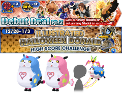 Until January 2nd at 23:59 PT, the Illustrated Xion EX Deal will be open! Each pull guarantees at least one Tier 4+ medal. Illustrated Xion EX is guaranteed within 15 pulls, and may arrive with a Status Bonus. Illustrated Xion EX (includes BGM): Reverse/Magic // Tier 7 Guilt // 0 SP Cost // AoE // for one turn: Reverse atk+2, atk+7, PSM atk+6, enemy def-3 & PSM def-4, enemy counter +1, Curaga, 5 SP recovery. For Jewel purchasers, a Bonus Jewel Campaign will be in effect until December 26th at 23:59 PT: Jewel Package // Campaign Bonus Jewels // Campaign Bonus Skip Tickets (Normal Amount ⇛ Campaign Amount) 100 Jewels // +10 Jewels // 0 ⇛ 0 540 Jewels // +10 Jewels // 2 ⇛ 4 1,700 Jewels // +50 Jewels // 7 ⇛ 14 2,400 Jewels // +100 Jewels // 10 ⇛ 20 6,600 Jewels // +400 Jewels // 25 ⇛ 50 14,700 Jewels // +1,300 Jewels // 50 ⇛ 100 During that same time period, the Holiday Damage Contest is also being held. Deal as much damage as you can before the enemy flees! Ranking rewards include the Green Reinstar Spirit Parts, Brooms, and Fantasia Mickey Bs. Lastly, until January 10th at 23:59 PT, a special draw featuring the Sora & Moogle medal will be open! This draw can be pulled from for free once a day, and a Sora & Moogle medal is guaranteed within 10 pulls (10 days). Players will receive 1000 Jewels for each Sora & Moogle medal owned at the end of the campaign period, so don't sell them! Jewels will be sent to eligible players after January 11th (PT). Images from this update can be viewed below. Are you pulling for Illustrated Xion EX?