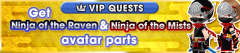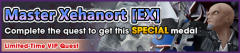 This week, VIP offers a Master Xehanort EX medal, the Ninja of the Raven (M) and Ninja of the Mist (F) avatar sets (Toy Katana accessory grants a +6 Skill Perk), six Gems (2 of each P/S/M type), and seven Mirrors. Master Xehanort EX: Reverse/Magic // Tier 7 Guilt // AoE // 3 SP Cost // for 2 turns: Reverse atk+2, M atk+7, enemy def & M def-2. Stronger with more HP, 5 hits. During this same time period, a 0 AP Campaign for all quests and raid bosses will be also be in effect. This week's Weekly Gem Quest offers a Speed Gem! Use the Sleeping Lion Keyblade, along with a no partner medals restriction, to clear this quest. Clear five quests in the Booster [Master Xehanort] Challenge to get Boosters for your Reverse medals! These quests will remain open until the end of the week. Lastly, this week's Union Cross update offers more Booster [Master Xehanort]s! 30-minute Bonus Times are at 4:00, 10:00, 14:00, 19:00, and 23:00 PT. There are a total of four Cross Boards this time, three of which are open from the start. *Boosters obtained from the above two events will last until January 31st at 23:59 PT. Images from this update can be viewed below.
